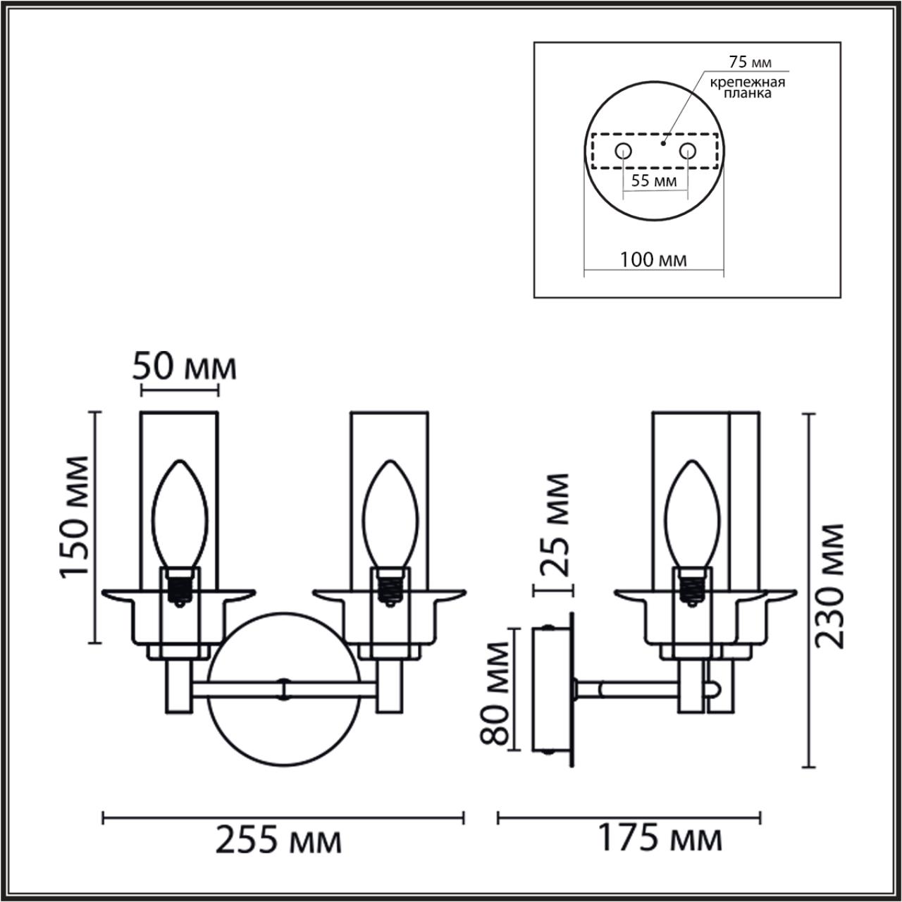 | Альтернативное название | 6555/2W CLASSI LN25 29 черный/дымчатый/металл/стекло Бра E14 2*40W 220V MADONNA |