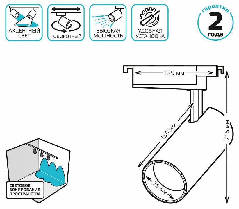 поворотный светильник, однофазная система